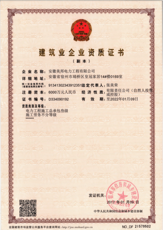 安徽美邦電力工程有限公司成立于2015年6月,坐落于宿州高新區(qū)。是一家從事電力工程設(shè)計(jì)、電力設(shè)備生產(chǎn)、電力工程施工、電力托管服務(wù)、電力工程搶險(xiǎn)為一體的一站式綜合性公司。公司現(xiàn)有各類(lèi)專(zhuān)業(yè)技術(shù)職稱(chēng)的管理人員及大批從事電力工程專(zhuān)業(yè)施…